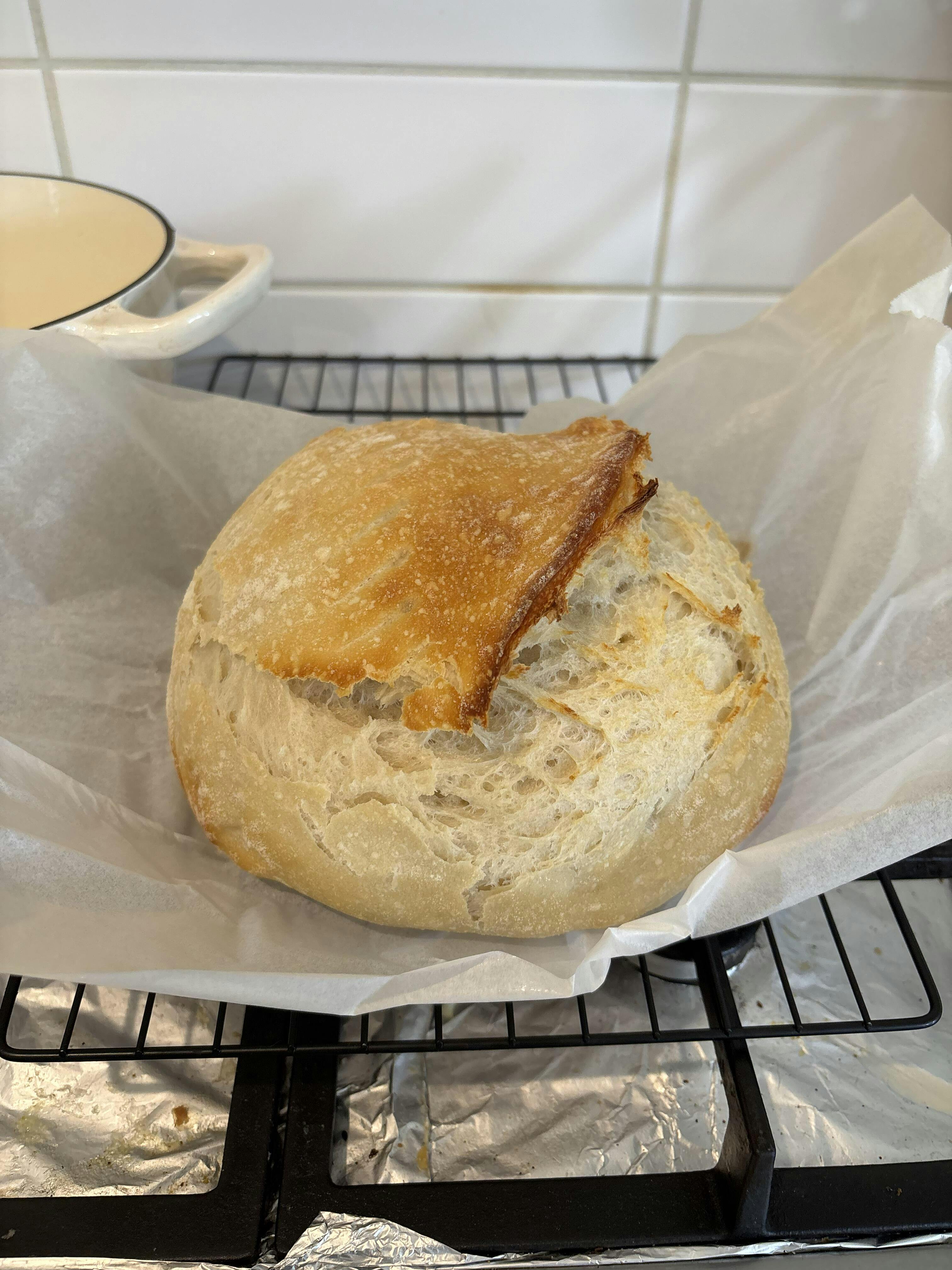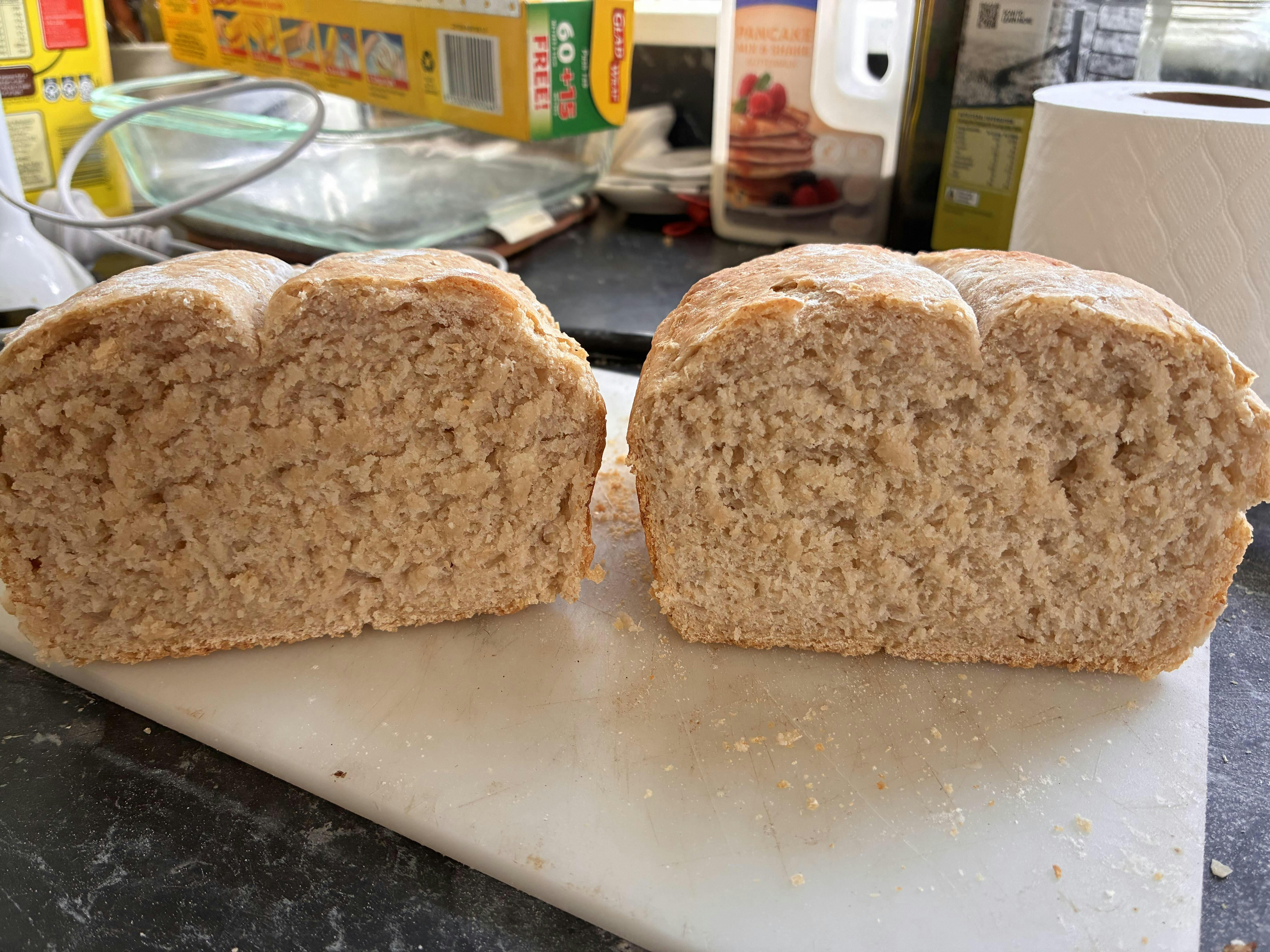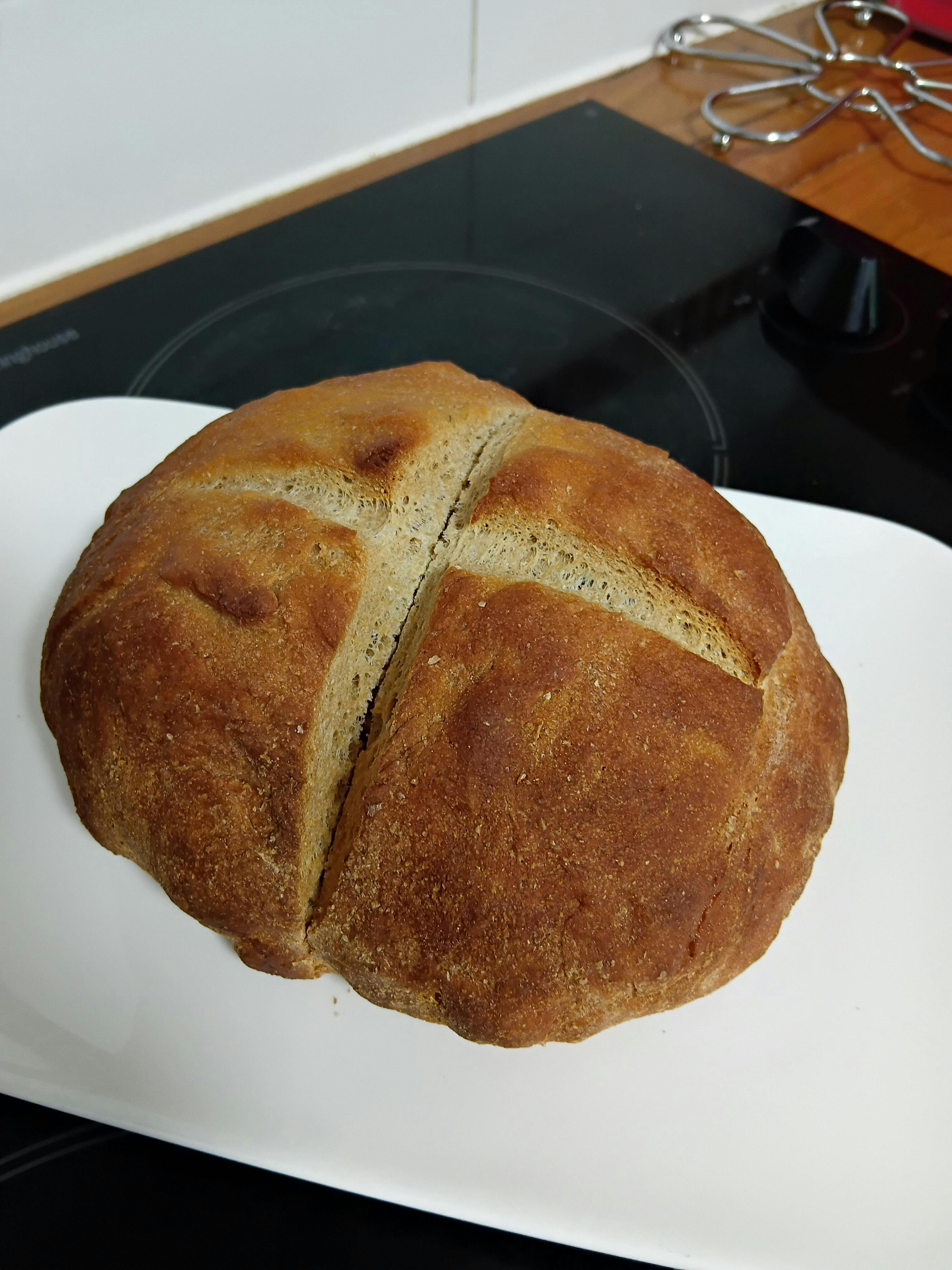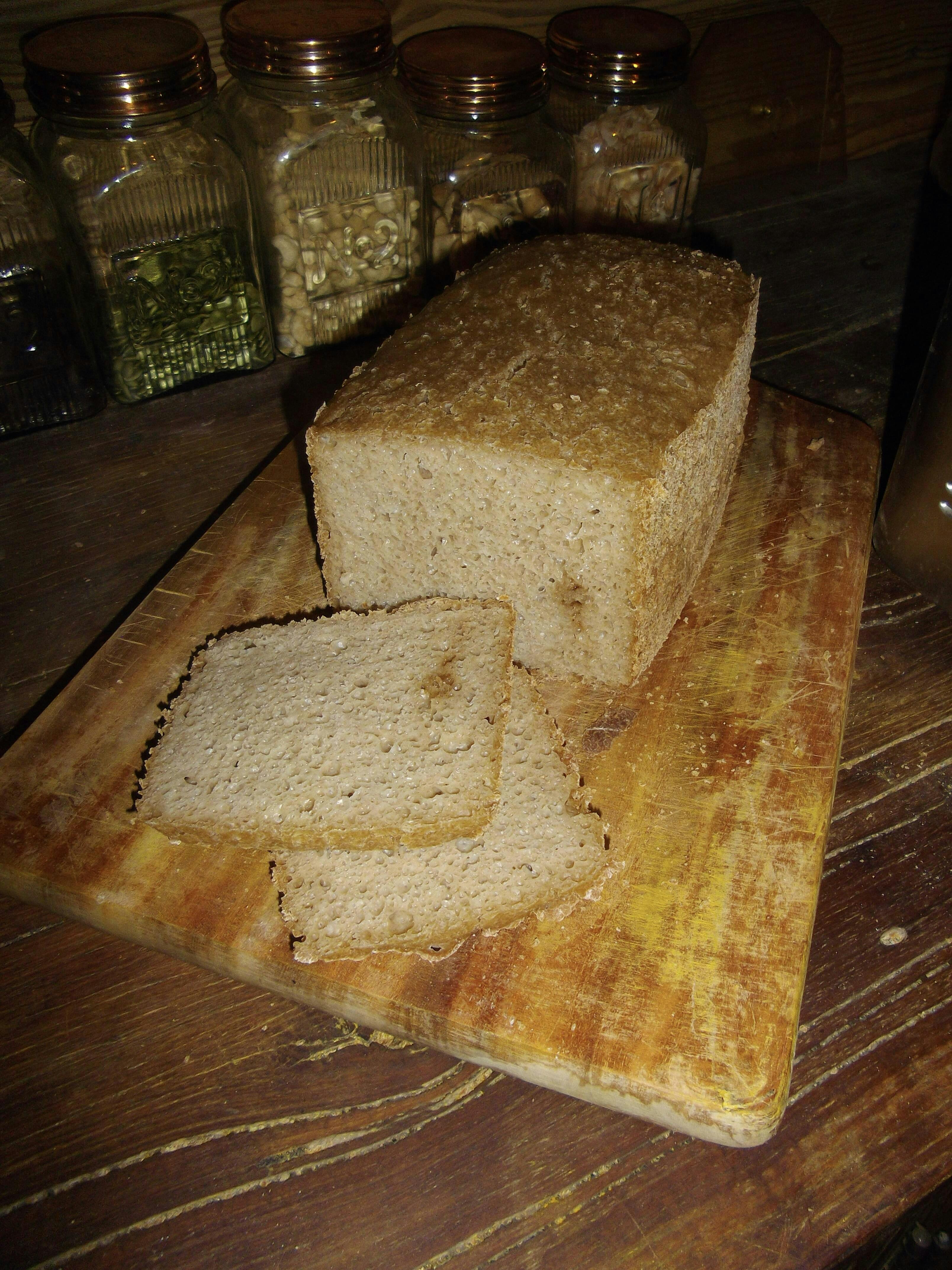 I need to buy something more suitable to bake it in. But it rose, looks like bread and is edible. Woohoo